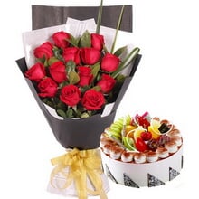 11枝红玫+圆形水果蛋糕