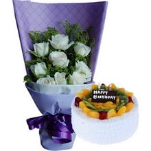 11枝白玫瑰+圆形水果蛋